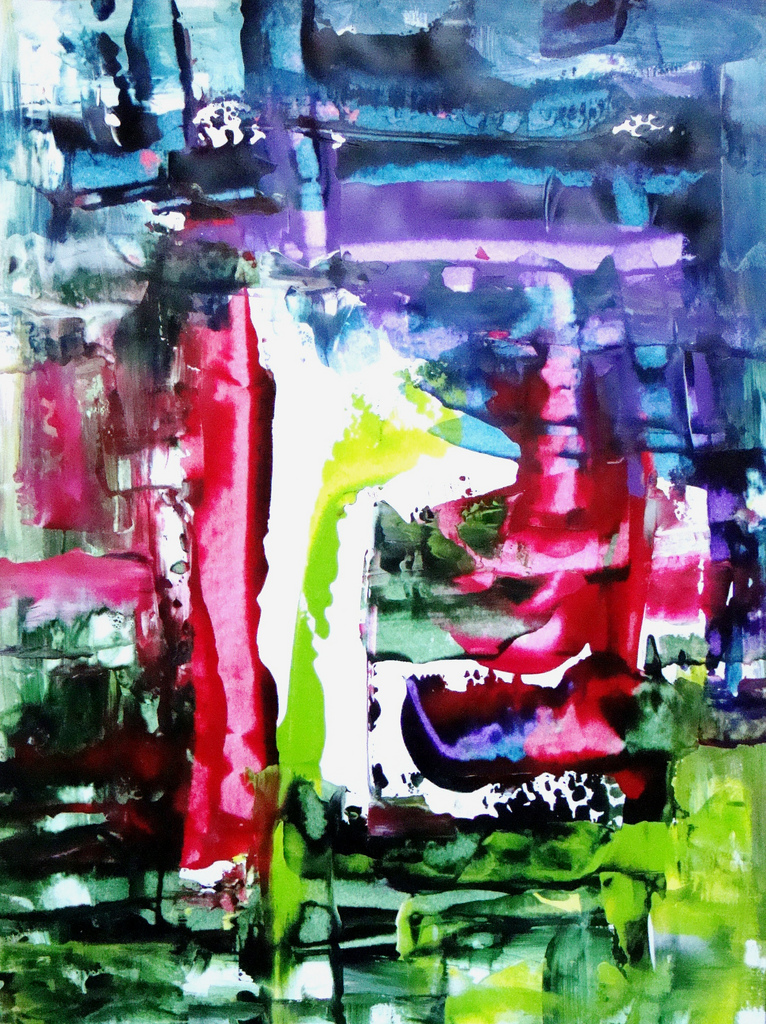 My painting style is playful, colourful, and multi-layered in both technique and meaning. Whereas most of my works are abstract, some of my paintings contain striking figurative elements. I like to refer to my paintings as ‘landscapes of the mind’, or as ‘paysages spirituels’.